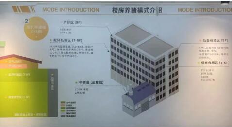 一是立體集約。項目主生產區由4棟9層的養豬樓組成,同等產能的情況下,較平房豬場可節約用地3/4,人豬比1:1277,較平房豬場可節約人力約50%。