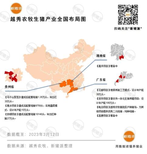 越秀農牧從貴州粵黔幫扶起步,已在貴州畢節、黔南州、安順等地陸續建設8個生豬養殖項目,設計產能102萬頭。近年來,越秀農牧生豬產業調整戰略,聚焦廣東省發展,環大灣區布局生豬產能,目前已在廣州花都、南沙,肇慶封開、高要,茂名以及河源等地規劃建設生豬養殖項目。大灣區產能規模是貴州的2倍,達200萬頭以上。預計在2025年實現商品豬出欄200-260萬頭,產能達到400-460萬頭。