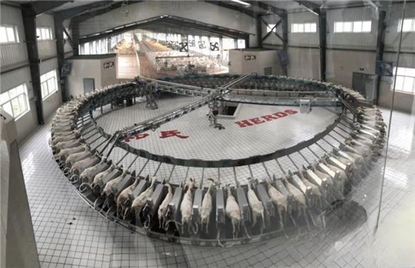 這里擁有亞洲最大轉盤式擠奶器和中央廚房飼喂系統,轉盤式擠奶器6-8分鐘可完成102只羊擠奶,并自動記錄每頭羊的產奶量,鮮奶通過管道進入制冷設備,幾分鐘就冷卻至4℃以下,半小時內被送到生產車間,2小時內被加工成奶粉。