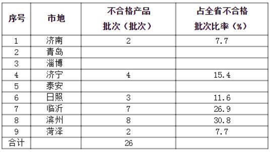《通報》表示,2022年山東省級飼料產品質量安全監督抽查共完成1144批次(其中含風險預警監測150批次),覆蓋全省9個市(濟南、青島、淄博、濟寧、泰安、日照、臨沂、濱州、菏澤),監測出不合格產品26批次,占比2.6%。其中:青島、淄博、泰安3市沒有發現不合格產品;其他6市不合格產品批次占全省不合格產品總批次比率依次是:濱州30.8%、臨沂26.9%、濟寧15.4%、日照11.5%、濟南7.7%、菏澤7.7%。
