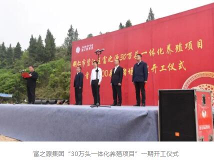 富之源集團:30萬頭一體化項目一期種豬場開工日前,富之源集團貴州銅仁市碧江區“30萬頭一體化養殖項目”,首期“2400頭種豬場項目”開工儀式在銅仁市碧江區桐木坪侗族鄉卜口村項目現場舉行。