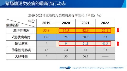 首先是檢測。針對性的防控源自精準、快速的疫病診斷。蔚藍生物在豬腹瀉類疫病的實驗室檢測上,采取的是國標方法,對豬的病毒性腹瀉四大病原以及細菌性腹瀉三種常見致病菌,均建立了相應的方法和評價標準。