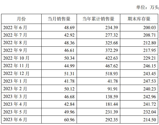 2023年1-6月,公司累計銷售生豬292.35萬頭,銷售量同比增長24.73%。