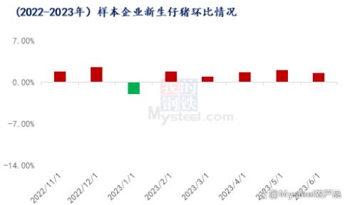 從跟蹤企業數據來看,2023年上半年新生仔豬數量仍然處于較高位水平,除去今年1月份受仔豬腹瀉影響新生仔豬數量環比小跌,其余月份均呈現不同程度環比小增。截止到6月份新生仔豬數同比去年增加6%以上,在假設下半年整體商品豬育肥上市率100%前提下 ,今年上半年新生仔豬數量對應到今年下半年整體出欄量仍然較為樂觀。從仔豬維度來看,下半年仍有較多育肥豬需要完成出欄。