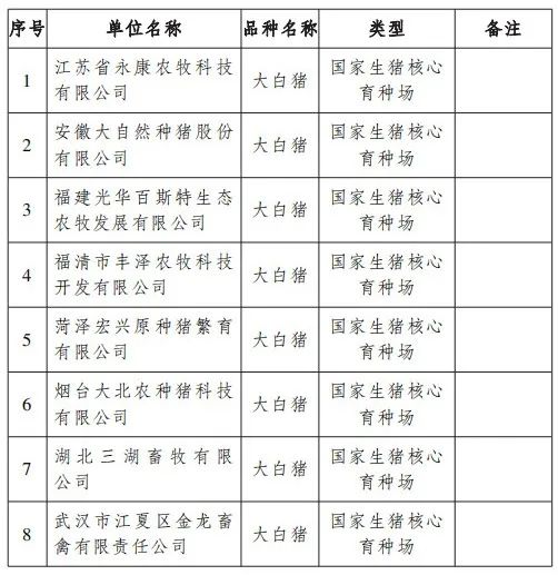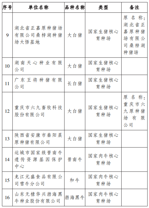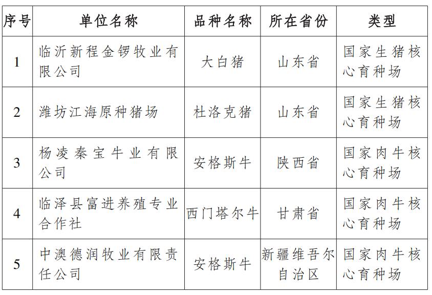 二、國家畜禽核心育種場核驗結(jié)果。江蘇省永康農(nóng)牧科技有限公司等13家國家生豬核心育種場、運城市國家級晉南牛遺傳資源基因保護中心等6家國家肉牛核心育種場通過核驗,有效期五年(見附件2)。濰坊江海原種豬場等5家企業(yè)未通過核驗,取消資格(見附件3)。