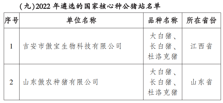 附件1:2022年遴選的國家畜禽核心育種場、良種擴繁推廣基地、核心種公豬站名單