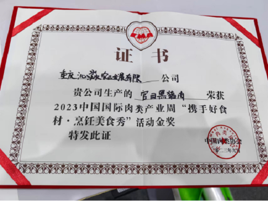 9月18-22日,2023中國國際肉類產(chǎn)業(yè)周暨第二十一屆中國國際肉類工業(yè)展覽會在重慶國際博覽中心召開。綦江區(qū)趕水鎮(zhèn)重慶沁淼農(nóng)業(yè)發(fā)展有限公司“官田黑豬”肉品和重慶金星股份有限公司“老四川”牛肉干產(chǎn)品在展會參展,并深受展會消費者喜愛。趕水鎮(zhèn)重慶沁淼農(nóng)業(yè)發(fā)展有限公司“官田黑豬”肉品參選“2023攜手好食材·烹飪美食秀”黑豬肉專場現(xiàn)場品鑒評比,并榮獲“金獎”。