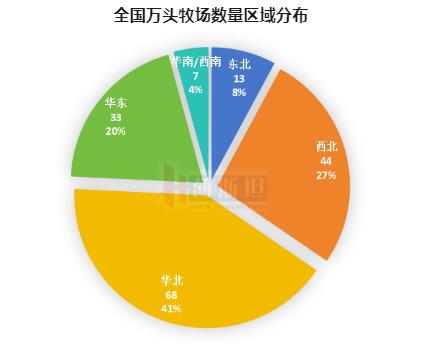 全國萬頭牧場75%分布在“三北”地區(qū),與我國奶源南北分布吻合。