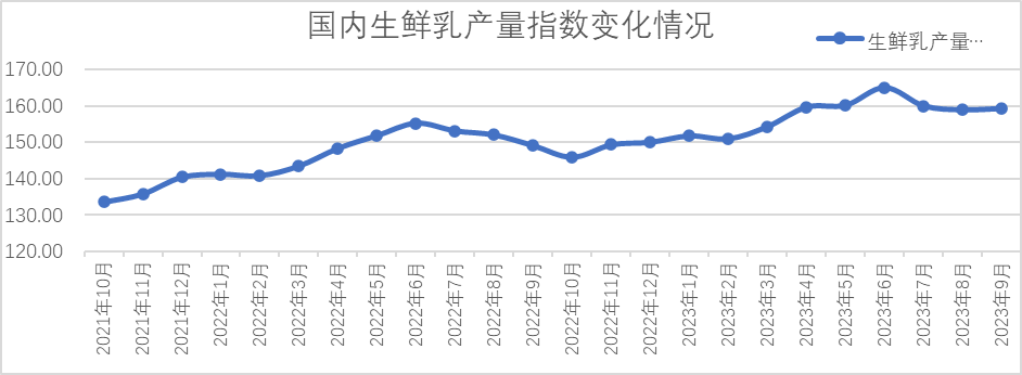 圖2 國(guó)內(nèi)生鮮乳產(chǎn)量指數(shù)變化情況