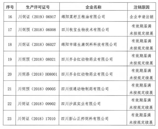 四川注銷23家飼料和飼料添加劑企業的生產許可證 來源: 互聯網 2023-12-29 10:39:05 閱讀() 根據《飼料和飼料添加劑生產許可管理辦法》有關規定,四川斯特佳飼料有限公司等23家飼料和飼料添加劑企業的生產許可證符合法定注銷情形,現予注銷。特此公告。附件:(文章來源:四川省農業農村廳)