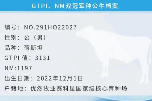2023年4月,美國NAAB最新公布國內在美注冊荷斯坦奶牛遺傳評估成績,優然牧業賽科星呼和浩特國家級核心育種場培育的編號為NO.291HO22027的后備種公牛排名全國第一,GTPI(綜合育種值...