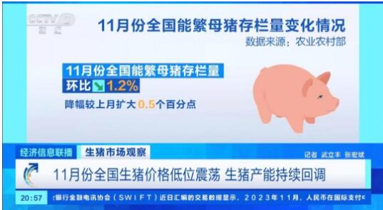 記者近日從農業農村部了解到,11月份以來,全國生豬價格低位震蕩運行,生豬產能持續回調,但仍略高于合理水平。