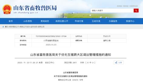 山東省畜牧獸醫(yī)局近日發(fā)布通知,自2023年12月1日至2025年11月30日,除種豬、仔豬(重量在30公斤及以下且用于育肥)、非洲豬瘟等重大動(dòng)物疫病無(wú)疫區(qū)和無(wú)疫小區(qū)生豬外,東部區(qū)外超過(guò)30...