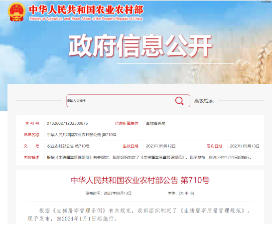 9月12日,農業農村部發布《生豬屠宰質量管理規范》,這是我國畜禽屠宰領域首部質量管理規范。日前,農業農村部畜牧獸醫局負責人就《規范》有關內容回答了記者的提問。