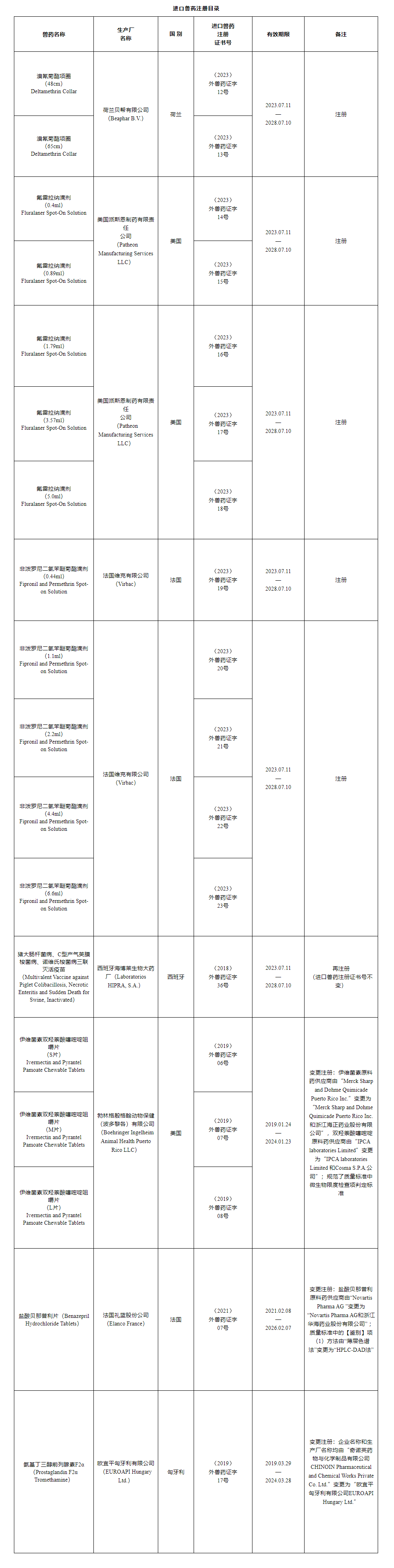 中華人民共和國農業農村部公告 第686號根據《獸藥管理條例》和《獸藥注冊辦法》規定,經審查,批準荷蘭貝幫有限公司等3家公司生產的溴氰菊酯項圈等3種獸藥在我國注冊,核...