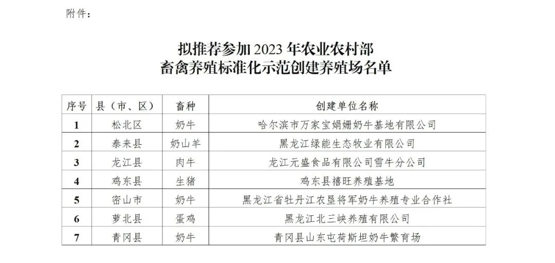 按照《黑龍江省2023年畜禽養殖標準化示范創建活動工作方案》的總體部署,省農業農村廳組織開展了2023年畜禽養殖標準化示范創建活動。經養殖場自愿申請,省級材料審核、指導服務...