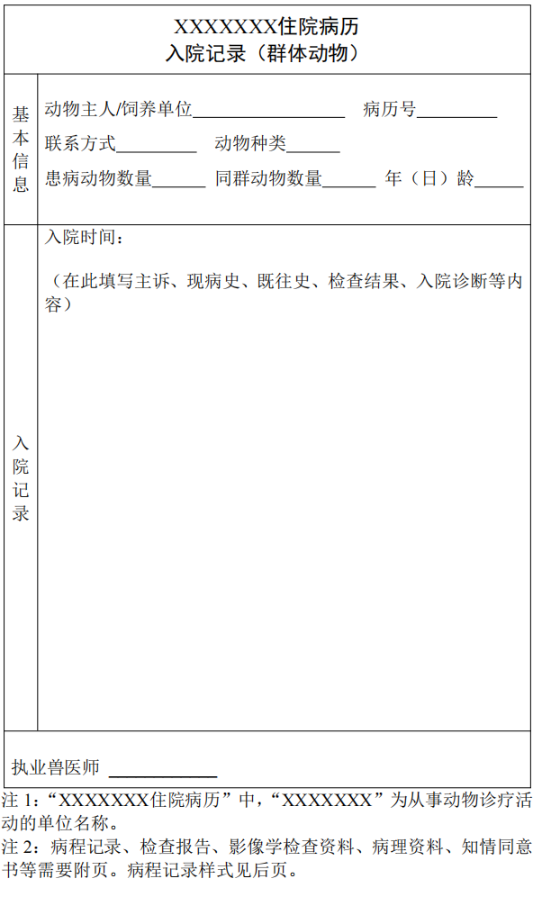7. 病歷樣式可參考附件形式,動(dòng)物診療機(jī)構(gòu)也可根據(jù)本機(jī)構(gòu)實(shí)際情況設(shè)計(jì)病歷樣式。
