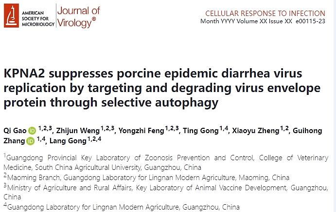 我校獸醫學院博士后高琦為文章第一作者,龔浪副教授、張桂紅教授為通訊作者。該研究獲得國家自然科學基金項目、廣東省自然科學基金項目、茂名實驗室科研啟動項目、農業部生豬產業技術體系崗位科學家項目資助。