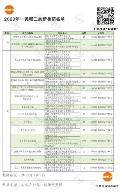 而普萊柯則是以5個公司或平臺,分別承載動物檢測技術、大動物生物制品和化藥,不同用途新藥的專業化分點運作,2023年共申報6個新獸藥,其中就包括一項一類新獸藥和多項二類新獸藥,是獸藥創新平臺生力軍。