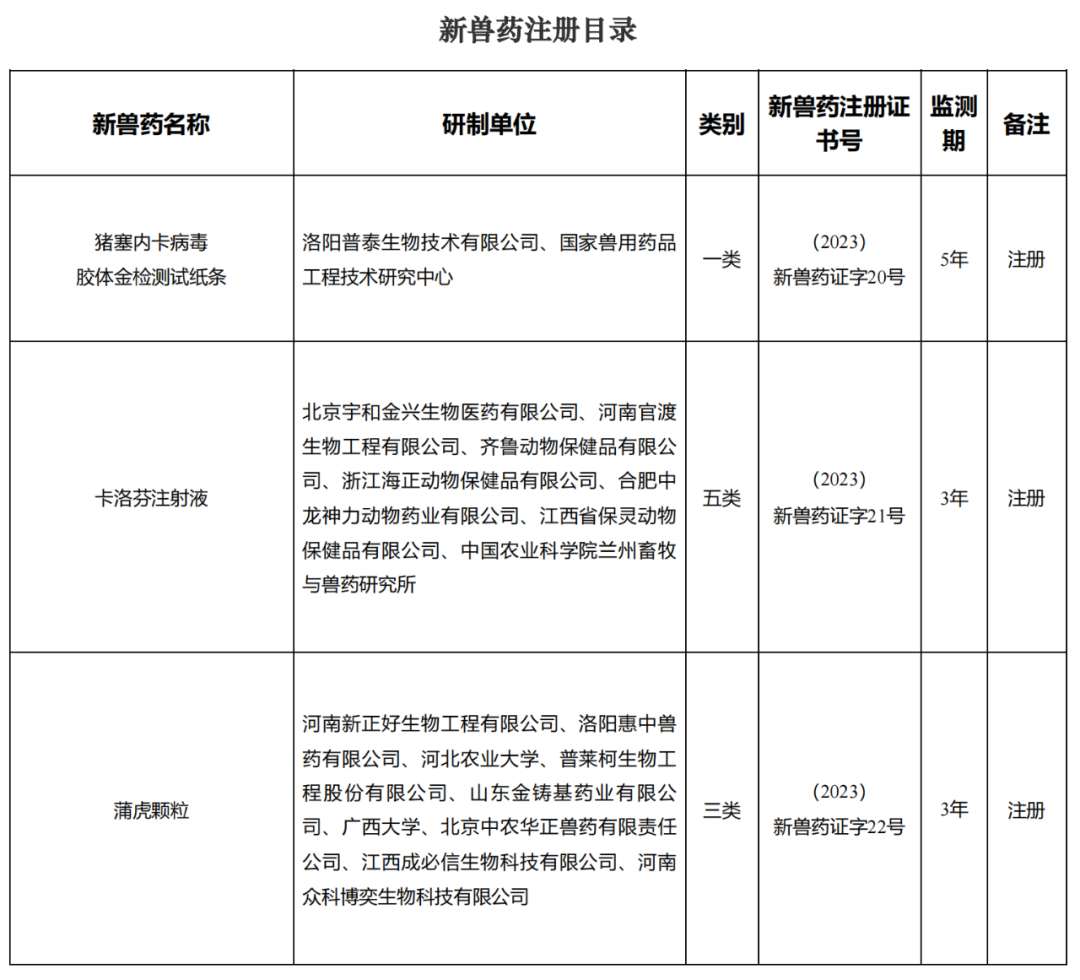 根據《獸藥管理條例》和《獸藥注冊辦法》規定,經審查,批準洛陽普泰生物技術有限公司等18家單位申報的豬塞內卡病毒膠體金檢測試紙條等3種獸藥產品為...